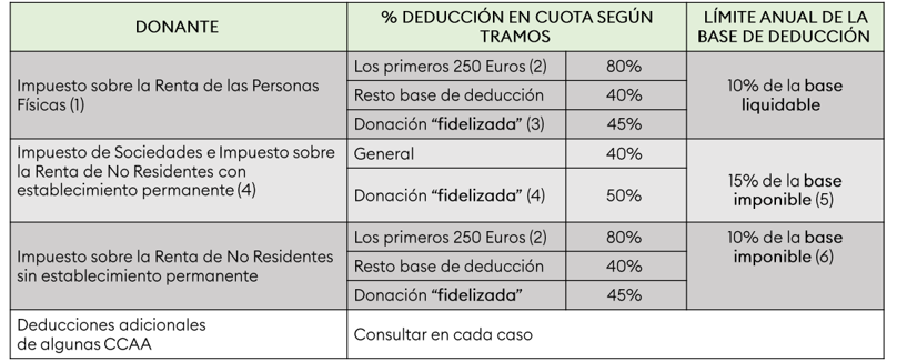 (6) “Tendrán derecho a aplicar la deducción mencionada para los contribuyentes del IRPF en las declaraciones que presenten por hechos imponibles acaecidos en el plazo de un año desde la fecha del donativo, donación o aportación (la base de esta deducción no podrá exceder del 10 por 100 de la base imponible del conjunto de las declaraciones presentadas en ese plazo)” (consultar toda la información en la Agencia Tributaria).