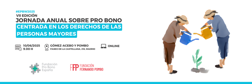 📅 Por eso, este año la VII Jornada Anual sobre Pro Bono, coorganizada por la Fundación Pro Bono España y la Fundación Fernando Pombo en el marco de la European Pro Bono Week, pondrá el foco en las personas mayores, en los factores que generan situaciones de vulnerabilidad, y en el papel del Derecho y de la abogacía pro bono para hacerles frente
