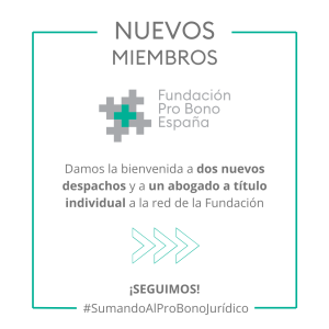 Agradecemos la confianza depositada en la Fundación Pro Bono España y su compromiso con el trabajo pro bono. Vuestra incorporación en nuestra red es reflejo de responsabilidad social para contribuir al fortalecimiento del tercer sector en nuestro país. Juntos, seguiremos aunando esfuerzos para hacer que el acceso a la justicia sea una realidad para todos y todas.